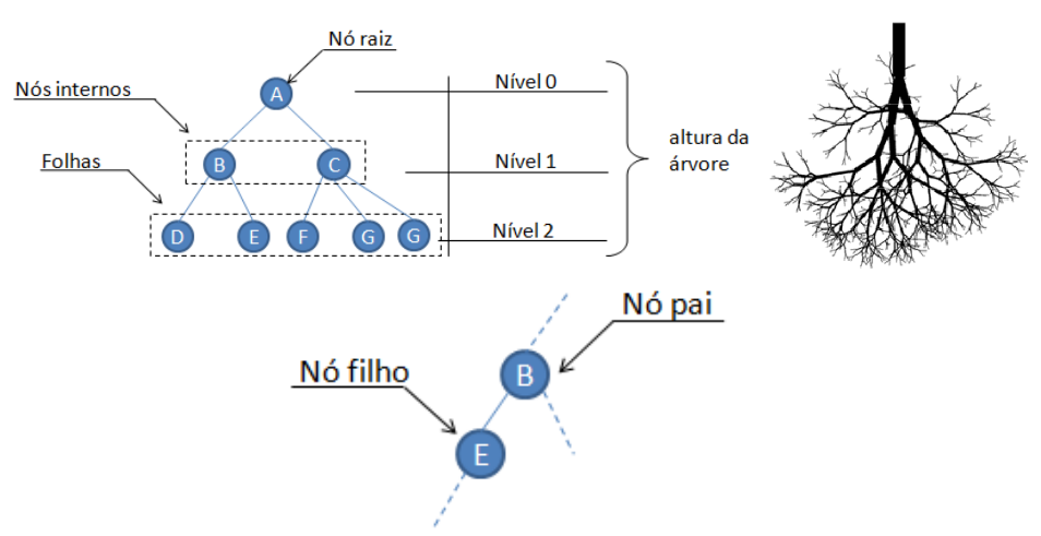 Os diretórios seguem uma estrutura de árvores invertida, onde o nível mais alto é chamado de diretório raiz, identificado por um **/** e a partir dele derivam outros diretórios da árvore.